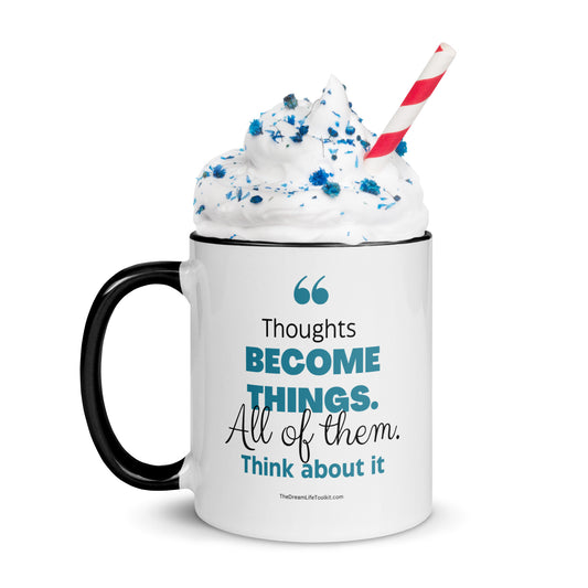 Thoughts Become Things (Yellow) - Travel mug with a handle